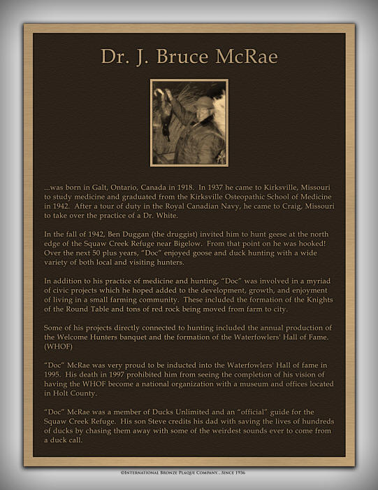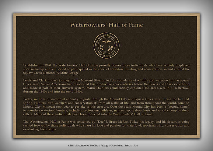 2013, a huge crowd attended the WHOF Sportsman dinner event at the WHOF's new home in the McRae Community Center in Mound CIty. A delicious meal was served to 167 guests, inductees, and award winning guests from the Mound City school, who had participated in a local wildlife art contest, sponsored by the local Kiwanis Club. A full report of the evenings special events may be obtained from the Mound City News. Five inductees were honored this year. An artist who was a previous inductee, Jim Pettijohn, honored the event with the donation of a hand carved wood duck and a black lab painting that he had done. These two articles will be permanently displayed at all WHOF events, and we feel very honored to be the recipient of them. Jim was able to attend, and view the many updates and improvements that have occurred in the last two years. The Klub has undergone many superb new improvements, adding kitchen space, and is offering a variety of very high quality menu items to make an evening visit to the Klub and WHOF a special evening. Joe Laukemper, president, would like to the thank all who have attended the events, donated to the events, and especially the board of directors, for their commitment to bringing this unique entity to a new level of interest in this NW Missouri waterfowl region.